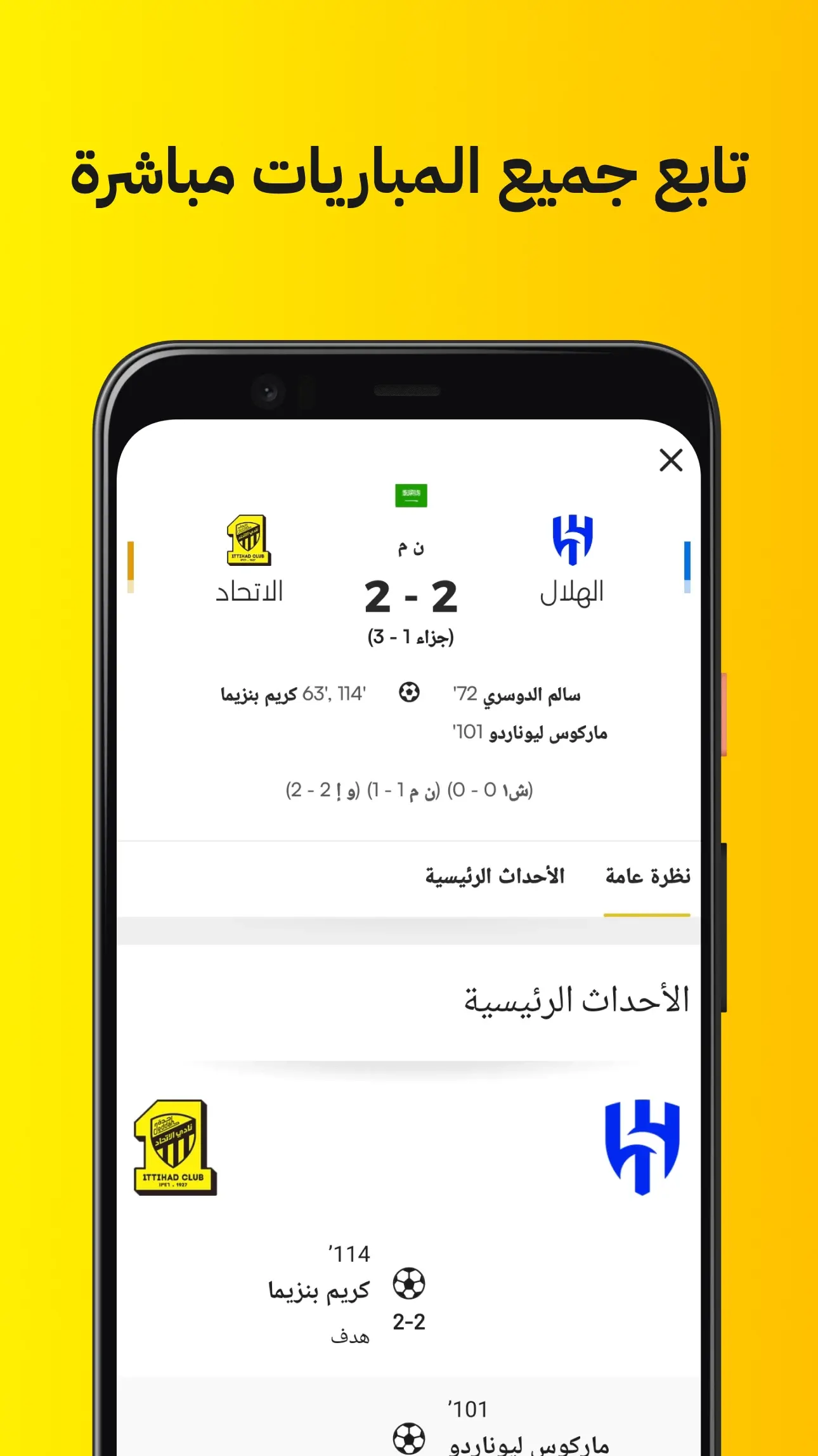 نتایج بهصورت لحظهای بهروزرسانی میشوند و اتفاقات مهم بازی دقیقاً در زمان وقوع نمایش داده میشوند.
